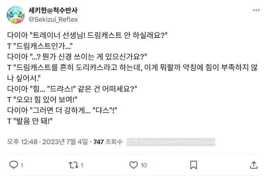 | - せきはん@脊髄反射, 2023년 07월 04일 게재 - 출처: https://x.com/Sekizui_Reflex/status/1676075403952422918 |