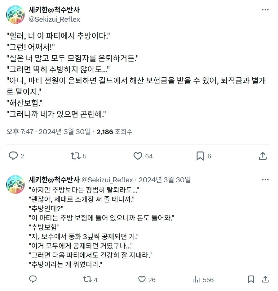 | - せきはん@脊髄反射, 2024년 03월 30일 게재 - 출처: https://x.com/Sekizui_Reflex/status/1774025612841406722 |