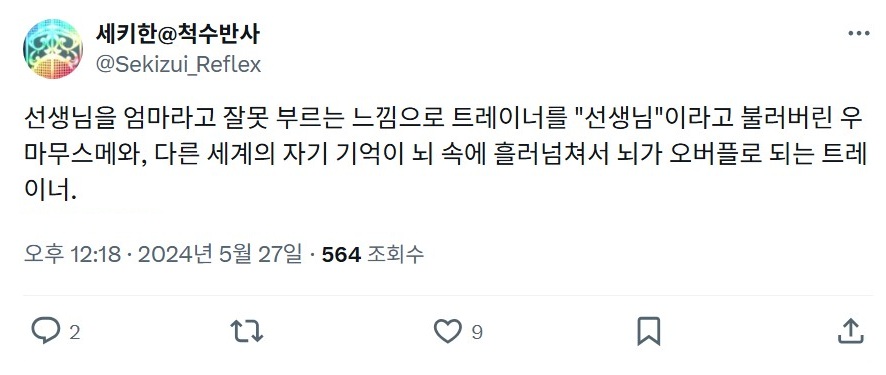 | - せきはん@脊髄反射, 2024년 05월 27일 게재 - 출처: https://x.com/Sekizui_Reflex/status/1794931144573735389 |