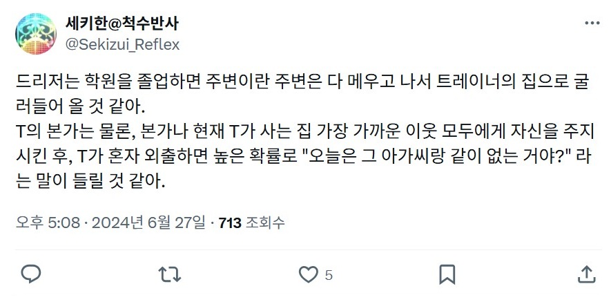 | - せきはん@脊髄反射, 2024년 06월 27일 게재 - 출처: https://x.com/Sekizui_Reflex/status/1806238208759591134 |