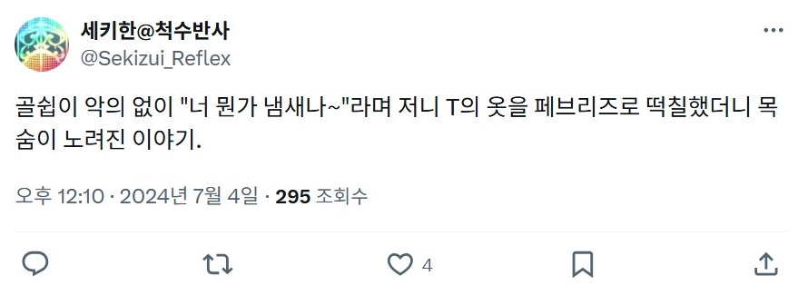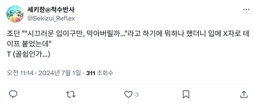 | - せきはん@脊髄反射, 2024년 07월 09일 게재 - 출처: https://x.com/Sekizui_Reflex/status/1810529499722981695 |