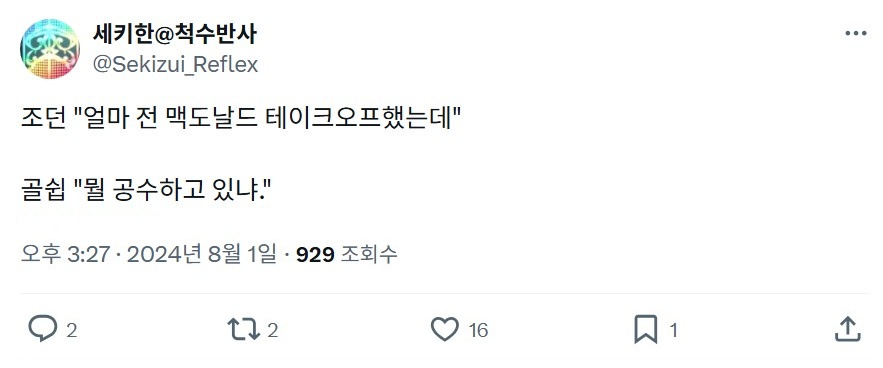 | - せきはん@脊髄反射, 2024년 08월 01일 게재 - 출처: https://x.com/Sekizui_Reflex/status/1818896312974426427 |