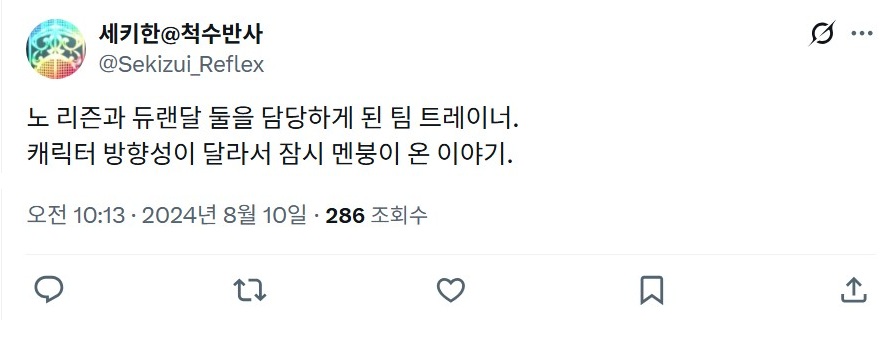 | - せきはん@脊髄反射, 2024년 08월 10일 게재 - 출처: https://x.com/Sekizui_Reflex/status/1822078804309008512 |