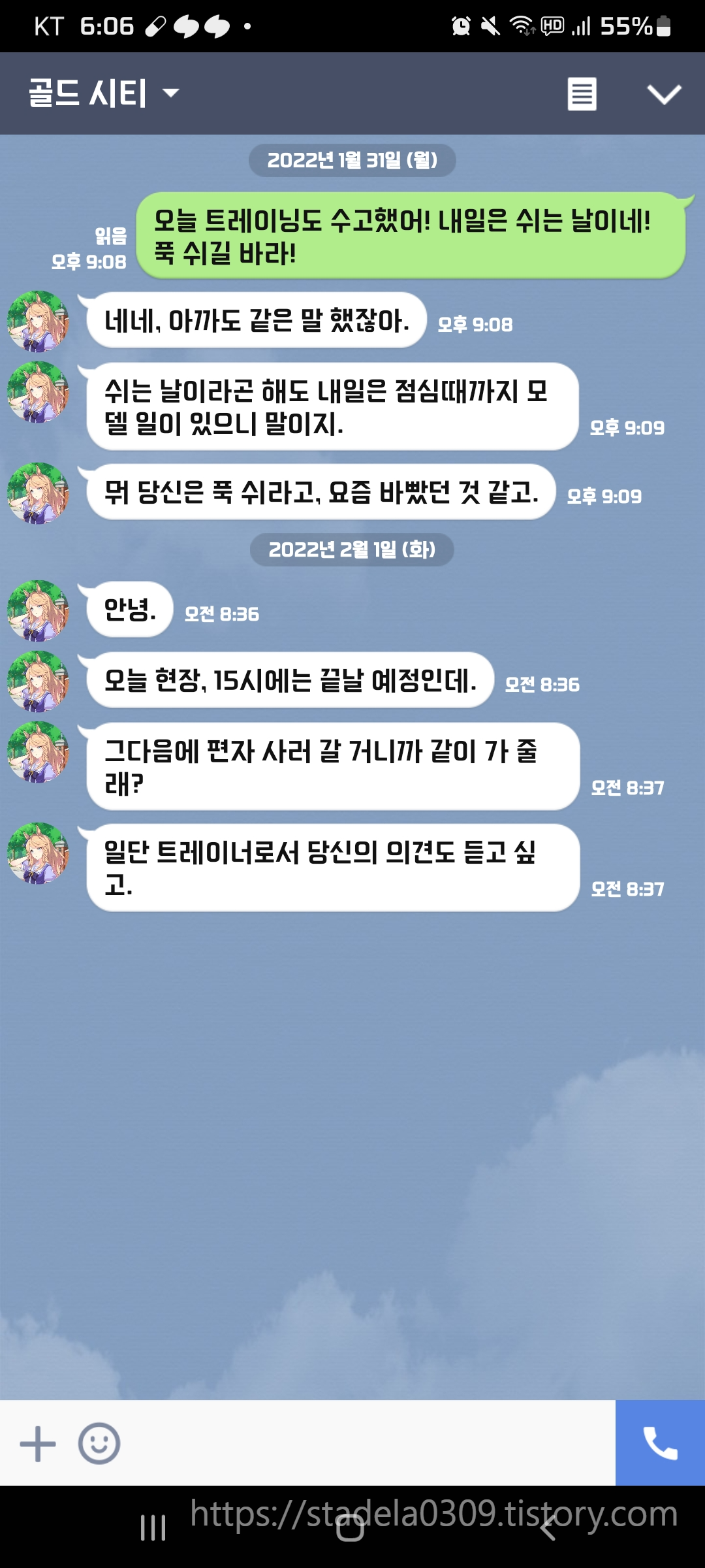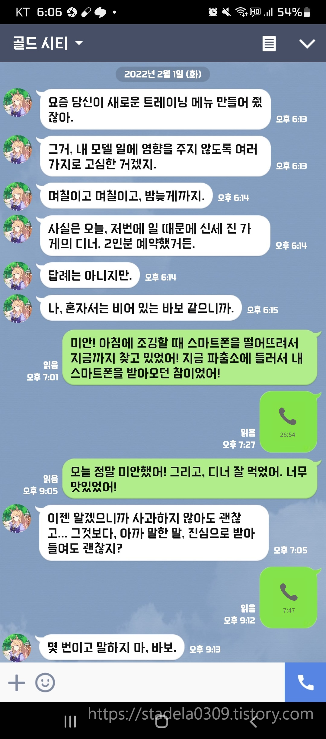 | 【매일 투고】 스마트폰을 떨어뜨렸을 뿐인데… (시티 편) 시티도 소지하고 있지 않으므로 언젠가 맞이하고 싶다… 조던과의 관계성도 굉장히 좋아 (어휘력) - 【毎日19時投稿】だいだらぼっち@ウマ娘LINEトーク画面風怪文書, 2022년 02월 01일 게재 - 출처: https://twitter.com/UMA_LINE666/status/1488485711305011209 |