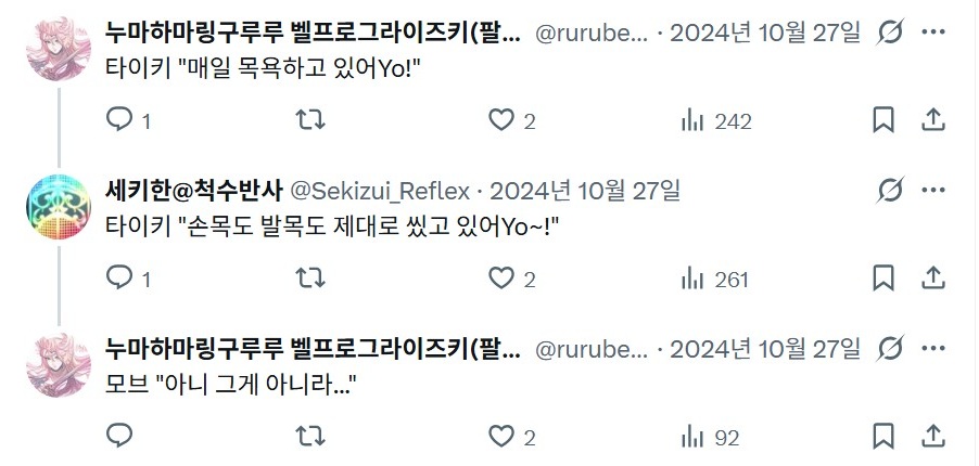 | - せきはん@脊髄反射, 2024년 10월 27일 게재 - 출처: https://x.com/Sekizui_Reflex/status/1850479915894018180 |