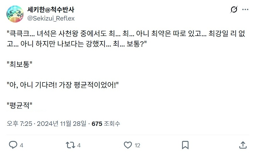 | - せきはん@脊髄反射, 2024년 11월 28일 게재 - 출처: https://x.com/Sekizui_Reflex/status/1862080419031904717 |