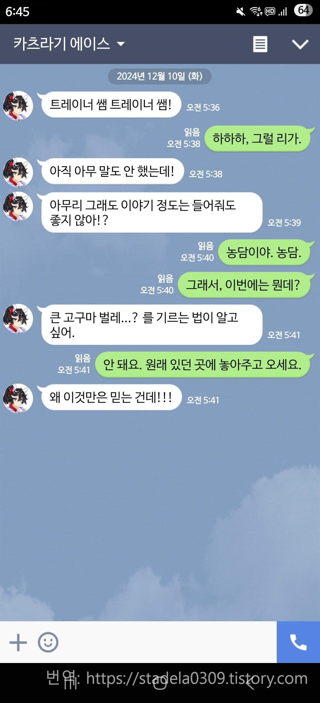 | 【우마무스메 LINE풍】 하이드라의 장난감 상자입니다. 카츠라기 에이스 개그 에피소드입니다. 패러디 소재 & 첫 작품이므로 여러 가지로 부족한 점이 많을 테지만 많이 봐주세요. 그러면, 부디. "진짜라니까! 믿어 줘~!!" "바보 같은 소리 하지 마." - ハイドラの玩具箱, 2024년 11월 28일 게재 - 출처: https://x.com/hydelanderbox/status/1729460814422409670?s=19 |