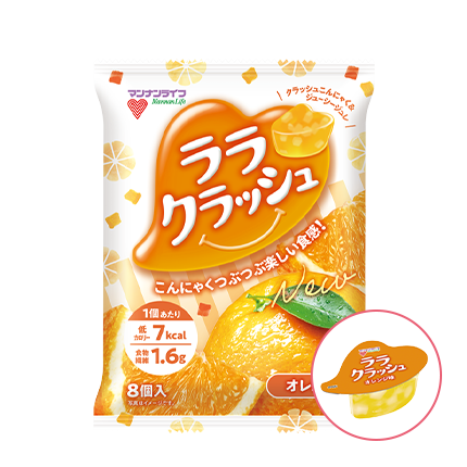 - 일본의 곤약젤리 제과 업체인 만난라이프(マンナンライフ)사의 대표 상품인 라라크러쉬(ララクラッシュ)를 가리킵니다. 여타 곤약젤리와 마찬가지로 곤약젤리 자체는 탄력이 강하고 구강 온도에서 녹지 않아 영유아나 노인층의 질식사고가 우려됩니다만, 곤약바타케(蒟蒻畑)와 달리 라라크러쉬는 젤리 안에 곤약젤리를 갈아 넣어 젤리 형태로 만든 것이므로 상대적으로 질식사고의 위협이 적다고 하겠습니다.