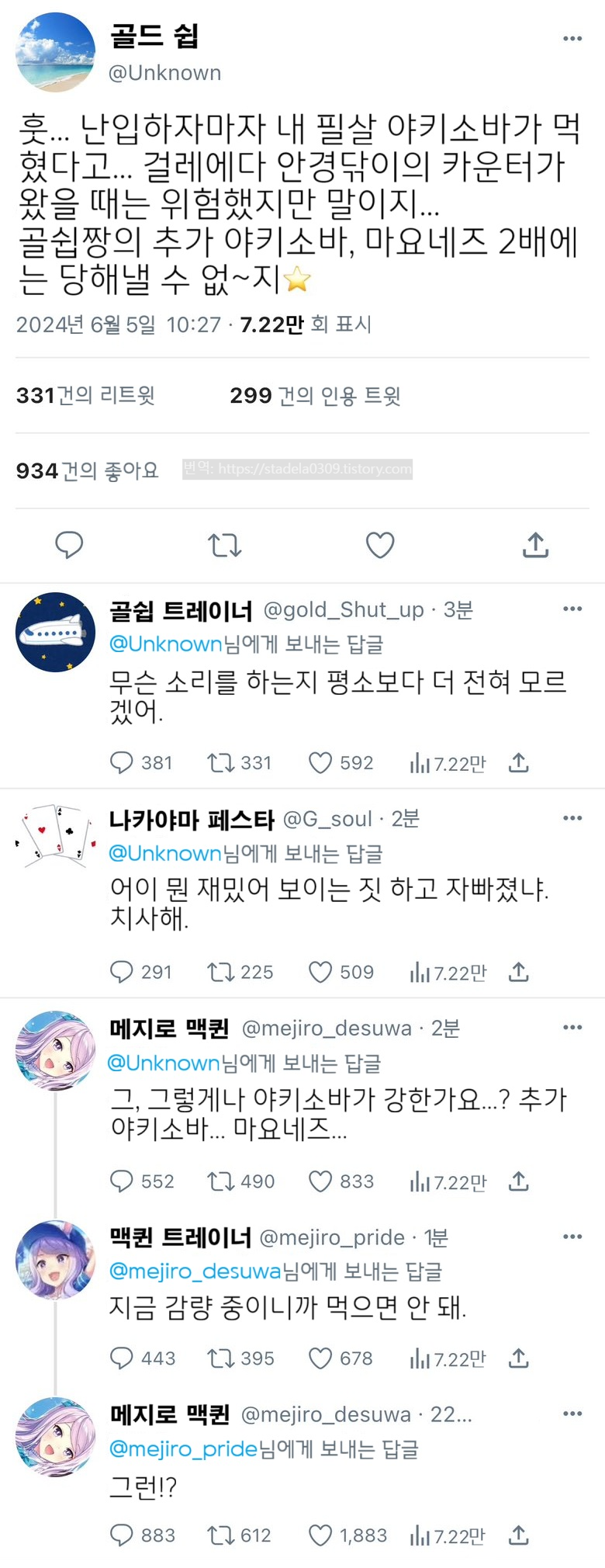 | 【우마무스메 Twitter풍】 하이드라의 장난감 상자입니다. 이번에는 고루시가 여행을 떠납니다. 이세계입니다. 최초에 방문한 세계는 '코털・우뭇가사리・아프로'가 키워드. 나오는 건 그것만이 아니지만요. 그러면 부디. "이세계는 고루시짱과 함께. ①" - ハイドラの玩具箱, 2024년 06월 05일 게재 - 출처: https://x.com/hydelanderbox/status/1798293568672694718 |