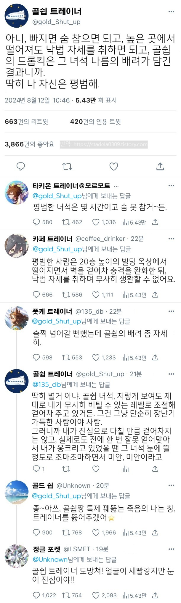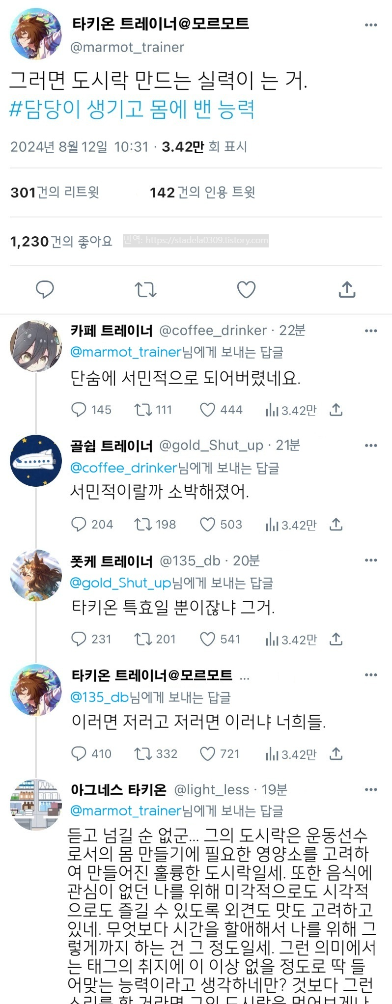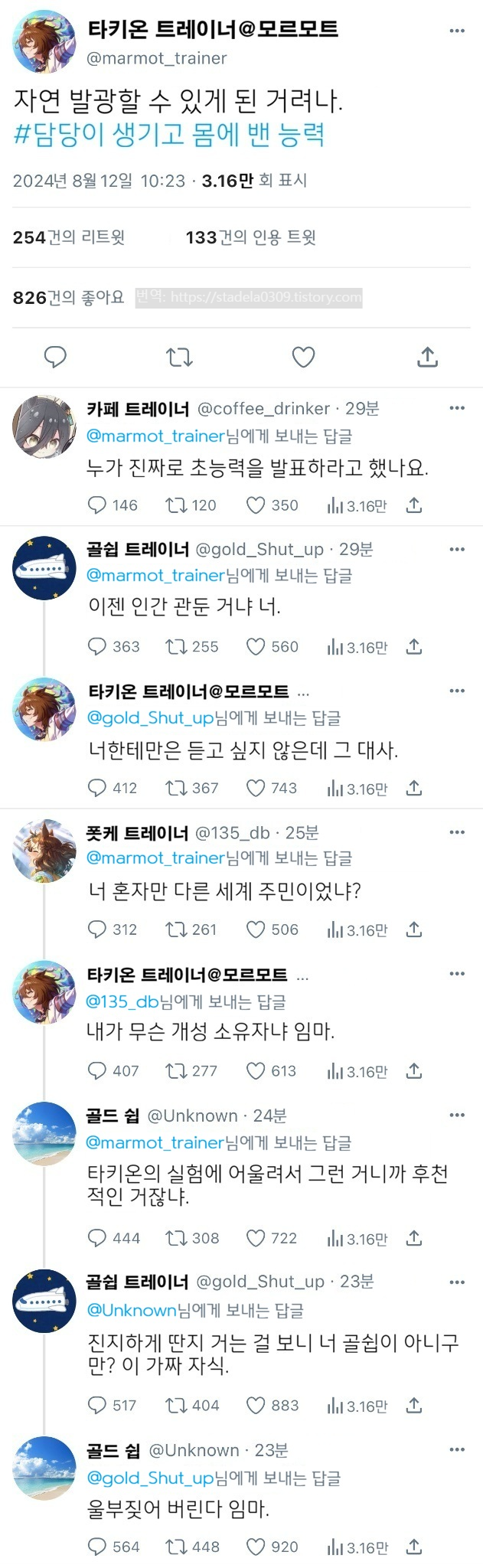 1) 타키온 트레이너의 "내가 무슨 개성 소유자냐 임마."