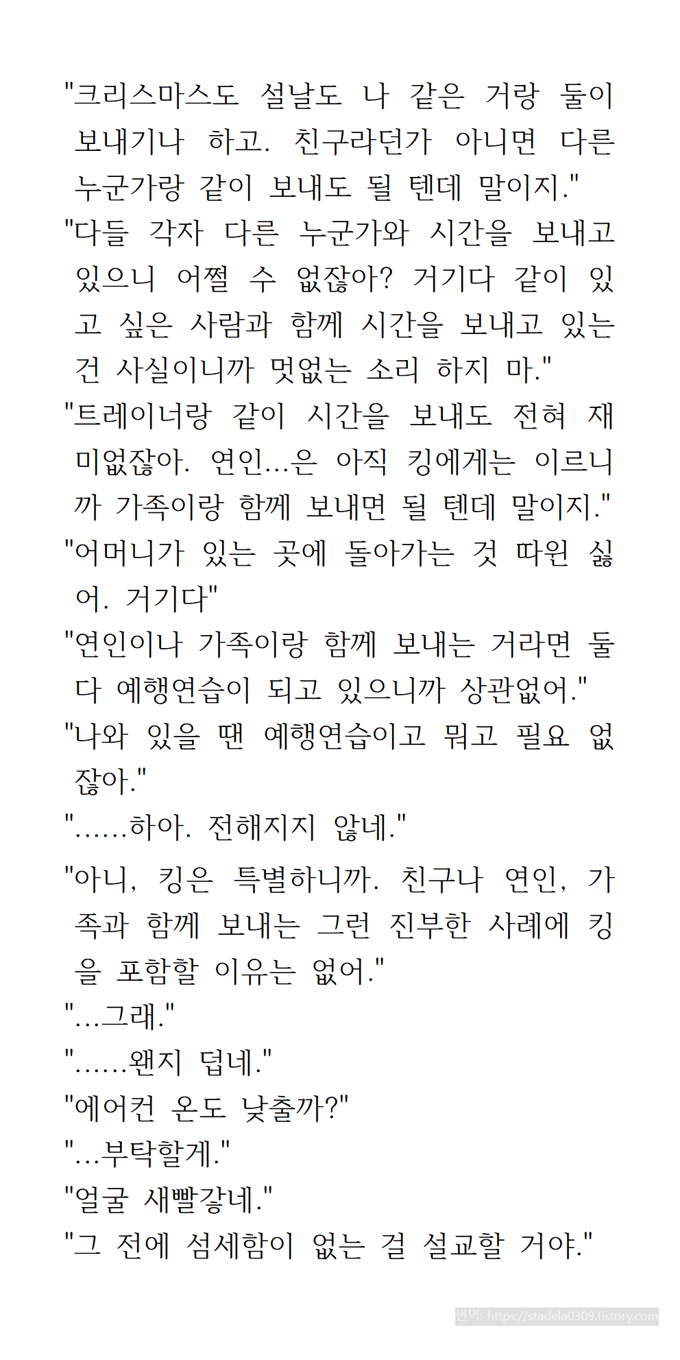 킹의 말: "당신은 언젠가 내 애인이자 남편이 될 테니 지금 이렇게 시간을 보내는 건 그 미래 예행연습이다."
