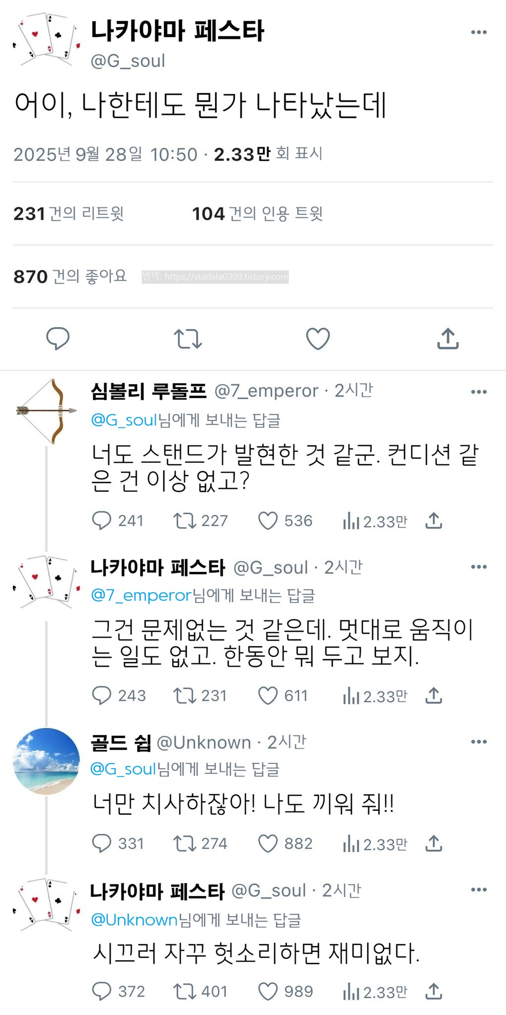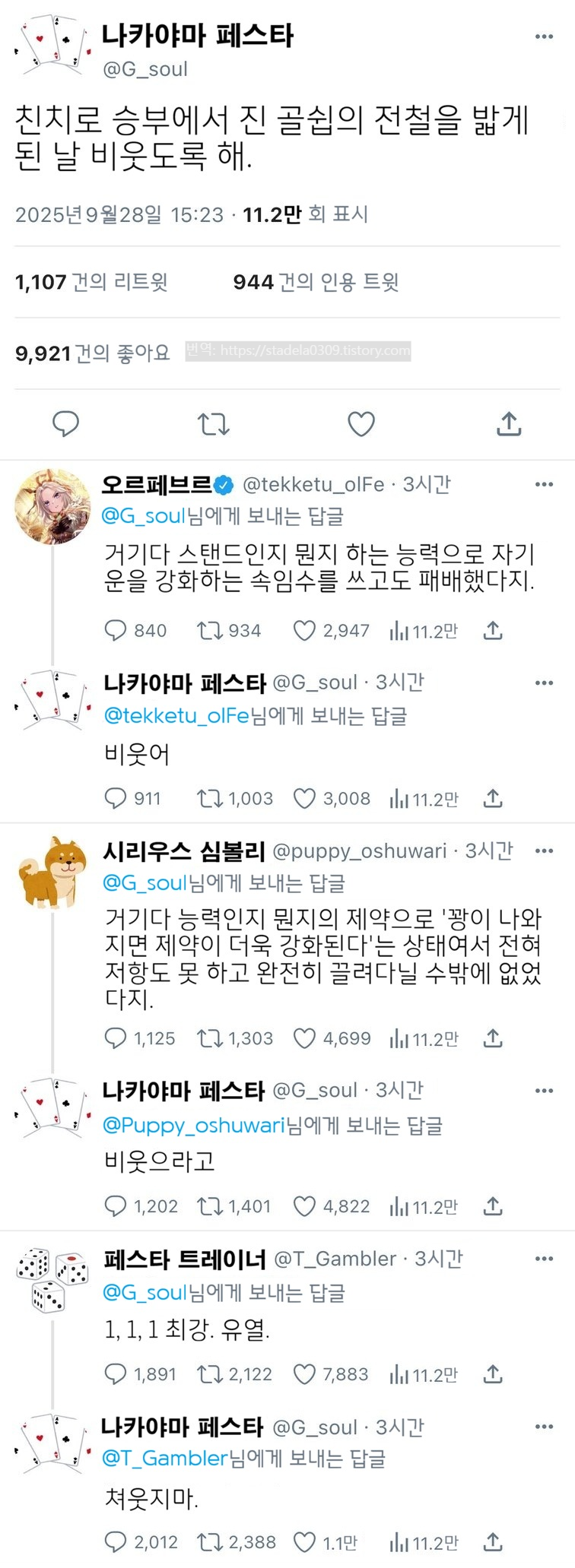 | 【우마무스메 Twitter풍】 하이드라의 장난감 상자입니다. 오랜만에 죠죠레센 학원, 제3화입니다. 이번 괴문서 속 발현자는 나카야마 페스타. 승부에 열중하는 그녀 다운 스탠드가 되었습니다. 그러면 부디 「콜 미 레이즈」 - ハイドラの玩具箱, 2026년 03월 11일 게재 - 출처: https://x.com/hydelanderbox/status/2031681433941811347 |
