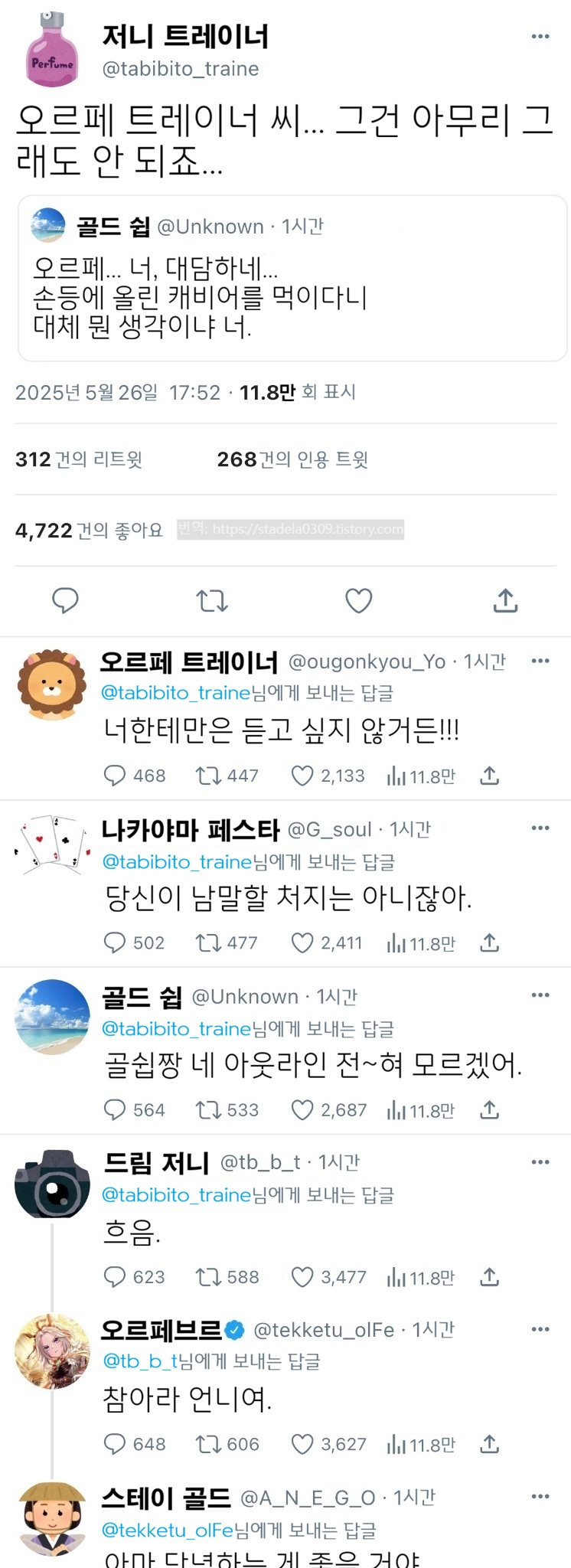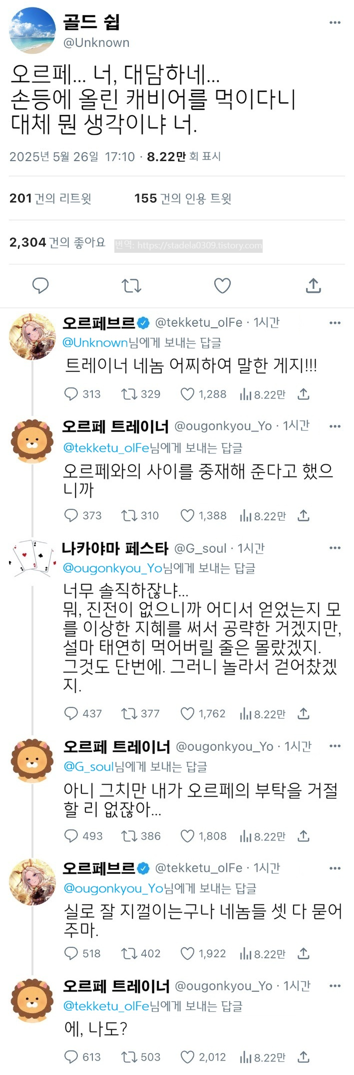 | 【우마무스메 Twitter풍】 하이드라의 장난감 상자입니다. 이번에는 마시멜로를 받고 쓴 '대담하게 공격했지만 역으로 당한 오르페'입니다. 스테고가 와서 달아오른 와중에, 오랜만에 약한 오르페를 즐겨주시길. 그러면 부디. 「진흙탕 싸움 (mudslinging)」 - ハイドラの玩具箱, 2026년 05월 26일 게재 - 출처: https://x.com/hydelanderbox/status/1926926280974540829 |