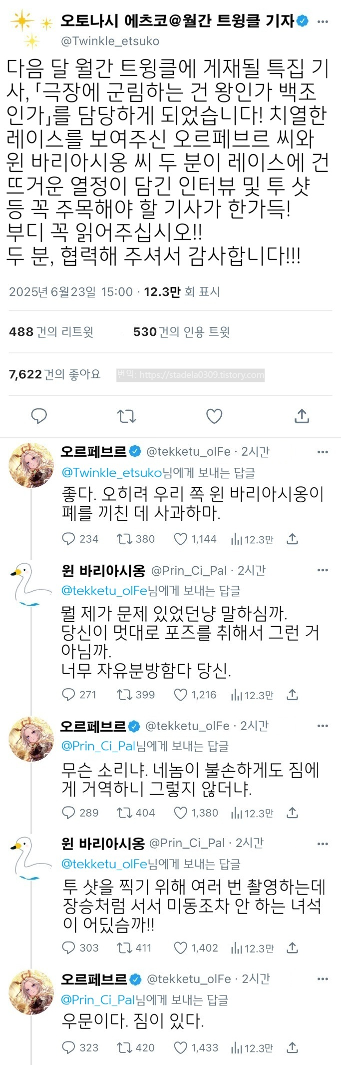 | 【우마무스메 Twitter풍】 하이드라의 장난감 상자입니다. 이번에는 마시멜로를 받았으므로. 오토나시 씨, 우리 쪽에선 출연할 때마다 피해를 받는 느낌이 든단 말이지. 그리고 점점 시옹과 오르페를 대하는 태도가 삐뚤어져가는 것 같아 ㅋㅋㅋ 그러면 부디 「담당했더니 의자를 하게 된 사건」 - ハイドラの玩具箱, 2025년 06월 25일 게재 - 출처: https://x.com/hydelanderbox/status/1937752618312290388 |