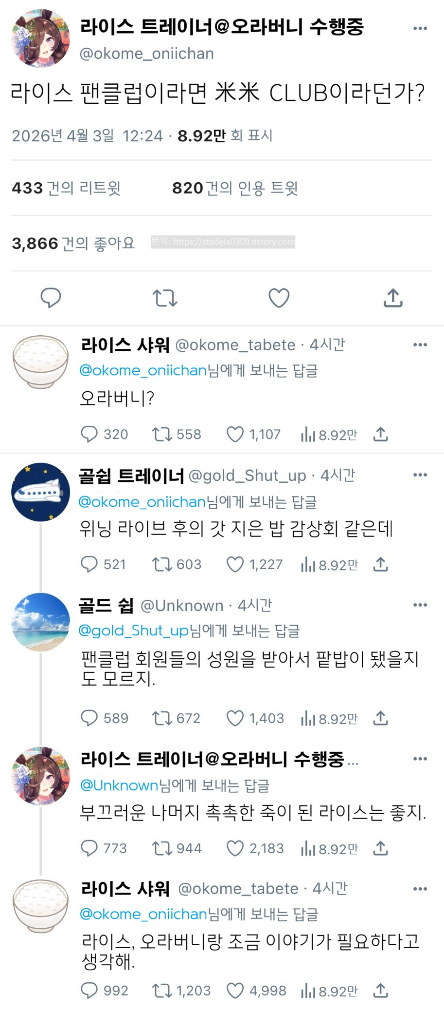| 【우마무스메 Twitter풍】 하이드라의 장난감 상자입니다. 이번에는 리퀘스트를 받아서. 실제로 우마무스메마다 팬클럽이 있다면 전부 다 좋아하는 사람이라던가 힘들겠지요. 실제 과금은 얼마나 해야 하려나. 그러면 부디 「우마무스메 팬클럽」 - ハイドラの玩具箱, 2026년 04월 07일 게재 - 출처: https://x.com/hydelanderbox/status/2041350260572692610 |